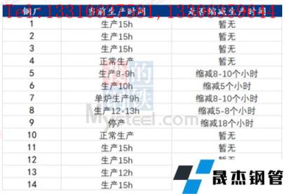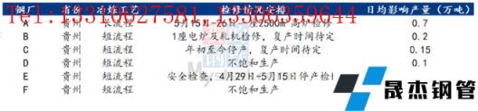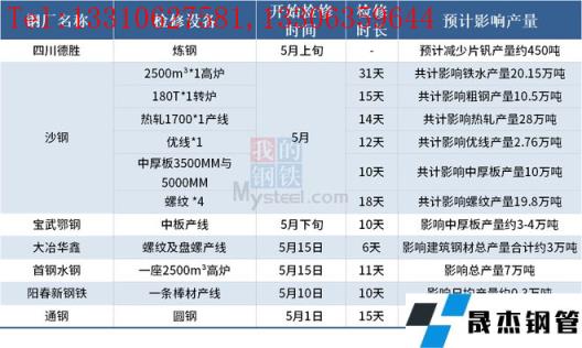 据不完全统计,截至5月12日,国内7家无缝厚壁钢管厂家发布检修计划。其中,检修时间最长的是沙钢 ,2500m³*1高炉检修31天,共计影响铁水产量20.15万吨。