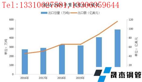 海关数据显示,自2016年以来,紧固件出口量及出口金额进本呈现逐年递增的情况,其中2018年出口到美国的总量为64万吨,同比增加4.6万吨,增幅为7.69%;出口金额为12.5亿美元,同比增加2.09亿美元,增幅为20.08%。
