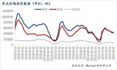 综合来看,本周福建市场社会库存数据环比上周减少2.83万吨,库存降幅为2.89%,同比去年增加2.58万吨,增幅为2.79%。从数据上来看,本周福建省社会库存呈现持续下降的趋势,整体降幅较小。库存下降主要体现在闽东和闽西北两个区域,一方面是因原材料价格居高不下,独立电弧炉厂成本较高纷纷进入停产、缩减开工时长等供应端资源大幅减少;另一方面,外省价格相对于本省价格偏高,部分资源有一定的外发,因此本周本省库存有所下降。从后期来看,近期本省雨水天气较多,对下游施工影响较大,市场整体需求进入疲软状态,再者市场价格持续走弱,下游买涨不买跌的情况一直出现,整体交投惨淡,虽本省的电炉厂持续检修减产中,但供应端产出资源大于需求端,因此预计下周福建省社会库存总量或出现增幅的现象。