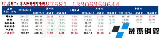 据统计,建材方面,分品种来看,螺纹延续微增,除华东、华中和华北,其余均有微增,且以广西、吉林、黑龙江和四川表现突出;线盘环比微降,除华东、东北和西南,其余均有增产,且以河南、山西等表现突出。目前来看增产主因在于铁水恢复、设备复产和品种转产;减量企业多因主动控产和临时检修。热卷方面,本周热轧产量小幅增加,主要增幅地区是华北地区,主要是厂库陆续有所缓解,无缝厚壁钢管厂家排产有所恢复,主要降幅地区是东北地区,主要是受疫情影响导致发运受限,无缝厚壁钢管厂家主动稍有减产,其他地区变动不大。