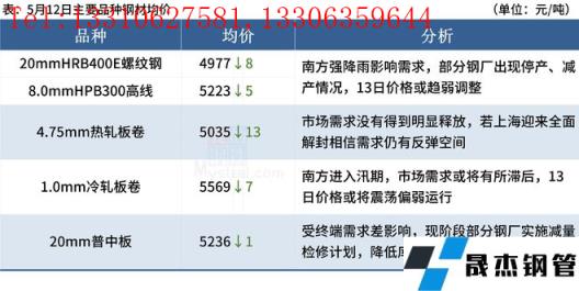 ◎ 从5月6日至5月11日期间,广东14家无缝厚壁钢管厂家多次下调废钢采购价格,最高跌幅达150元/吨。在暴雨的影响下,部分无缝厚壁钢管厂家考虑到成品库存压力,清远地区多数电弧炉无缝厚壁钢管厂家陆续减产,从原先的生产18-20小时到目前的8-12个小时,生产时间大幅度缩短,维持最低生产,个别无缝厚壁钢管厂家还出现了停产检修。详情>>
