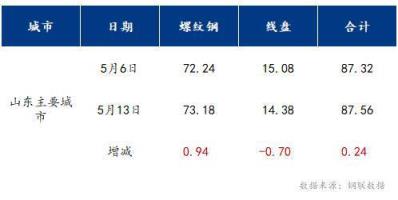 本周山东市场主要城市螺纹钢社会库存73.18万吨,较上周增加0.94万吨;盘螺社会库存14.38万吨,较上周减少0.7万吨;总库存87.56万吨,降0.24万吨。