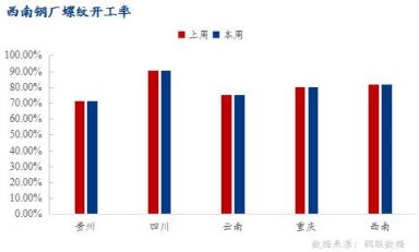 四川区域:部分不饱和生产无缝厚壁钢管厂家有所恢复,螺纹钢产能利用率88.67%,环比上升0.29%;开工率90.48%,环比持平;周产量33.48万吨,环比增加0.11万吨。