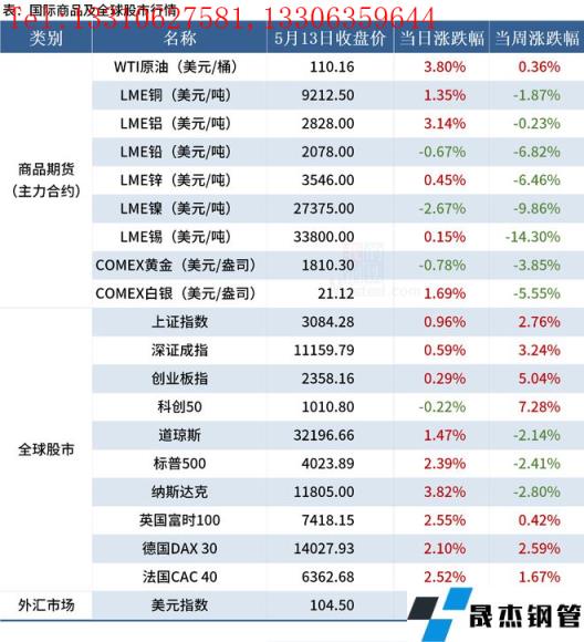 ◎5月13日,全国主港铁矿石成交93.50万吨,环比增76.4%;237家主流贸易商建材成交15.61万吨,环比增27%。