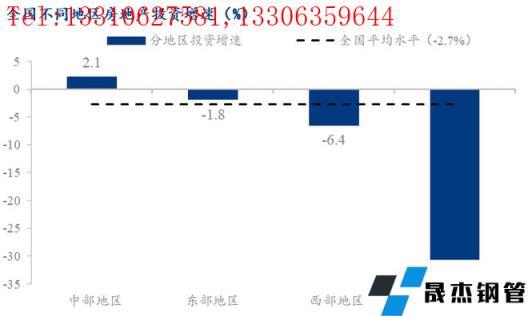 分区域来看,中部地区地产投资表现最好,累计同比仍维持着2.1%的正增长,其次为东部地区,同比降幅仅1.8%,二者降幅均明显低于全国平均水平。西部地区及东北地区投资降幅明显高于其他地区,降幅分别达到6.4%和30.5%。反映房地产企业投资的谨慎度明显上升,投资集中在市场较为成熟的东部及中部地区,对于经济不发达的地区投资额明显下滑。但值得注意的是,这或将导致市场投机情绪升温。