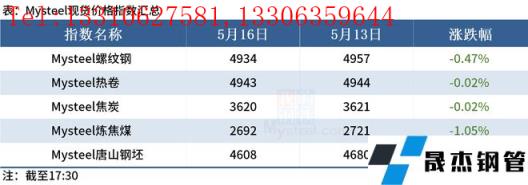 ◎ 5月16日全国15家长、短流程代表无缝厚壁钢管厂家废钢库存总量86.91万吨,较上周五增.1万吨,增1.25%;库存周转天数8.9天,与上周五增0.2天;日均消耗4980吨,较上周五降1.19%;日均到货量5388.73吨,较上周五增10.13%。详情>>