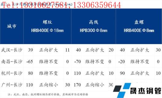 统一为理计单位后,武汉高于长沙39元/吨,南昌低于长沙65元/吨,杭州高于长沙80元/吨,广州高于长沙110元/吨。