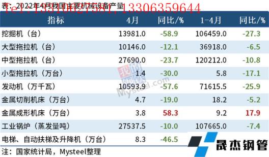 总体来看,4月,除金属成形机床外,其余主要机械设备产量均有所下滑。其中,挖掘机、发动机产量下降较为明显,同比降幅分别达58.9%、57.6%。