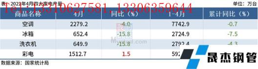 国家统计局数据显示,2022年4月中国空调产量2279.2万台,同比下降4%;1-4月累计产量7742.9万台,同比下降0.7%。