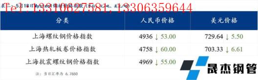 分地区方面,上海螺纹钢价格指数4936,下跌53.0;上海热轧板卷价格指数4758,下跌60.0。(单位:元/吨)