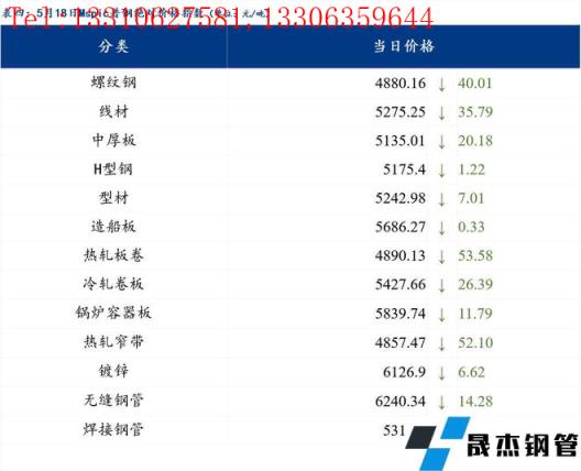 5月18日普钢绝对价格指数变化:综合指数5121.58,下跌34.88;螺纹钢指数4880.16,下跌40.01;线材指数5275.25,下跌35.79;热轧板卷指数4890.13,下跌53.58;冷轧板卷指数5427.66,下跌26.39;中厚板指数5135.01,下跌20.18。