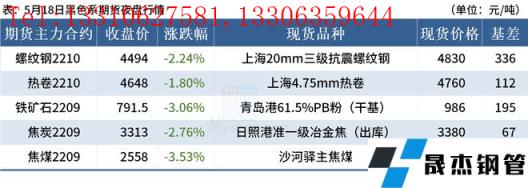 ◎5月18日,全国主港铁矿石成交84.00万吨,环比减13%;237家主流贸易商建材成交12.63万吨,环比减11.7%。