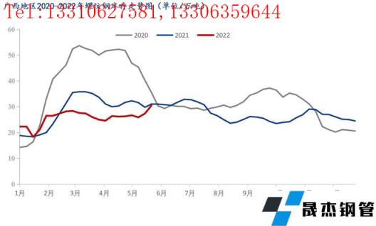 本周广西建筑厚壁无缝钢管社会库存总量增幅较为明显。分区域来看,目前部分资源工程输送主要以厂发为主,南宁资源到货量以及库存总量整体不高,同时,南宁区域出货主要以市场居多,但由于本周期螺以及原料端的持续走弱,市场交投性需求迅速缩减,所以南宁社会库存出现小幅下降。柳州区域,区域内无缝厚壁钢管厂家螺纹资源产能尚可,线盘资源生产整体偏弱,短期内商家分货量有所减少,出货意愿尚可,但从供需关系来看,供给端仍强于需求端,商家螺纹资源累库幅度明显,线盘资源小幅增加。截至目前,广西市场库存建筑厚壁无缝钢管36.1万吨,较上周相比增加3.45万吨。