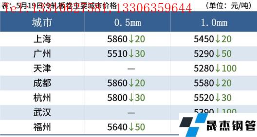 冷轧板卷:5月19日,全国24个主要城市1.0mm冷卷均价5487元/吨,较上个交易日下跌48元/吨。贸易商心态较为悲观,市场报价混乱,多为暗降出货,下游采购企业仍以按需采购为主,需求持续疲软。库存方面,据不完全统计,本周冷轧无缝厚壁钢管厂家库存44.14万吨,周环比增加1.09万吨;社会库存137.29万吨,周环比增加0.48万吨。综合来看,故预计20日国内冷轧板卷价格或将偏弱运行。