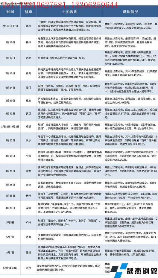 近期各地首轮集中供地陆续完成出让,据统计,截至5月20日,除上海、长春、沈阳、郑州还未完成供地外,其余18个城市均已完成首批集中供地,此次出让流拍撤拍率下降,溢价率有所提升。具体情况如下: