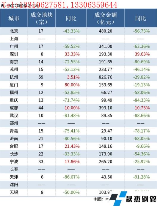 与2021年首轮集中供地相比,今年集中供地成交规模呈下滑态势,18个已完成首轮供地出让的城市中,仅有6城成交宗数同比上涨;从成交金额来看,18城首轮供地共收金3922.84亿元,其中16城成交金额同比大幅下滑。具体如下: