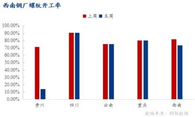 贵州区域:因亏损加重,多数无缝厚壁钢管厂家停产,产量明显下降,螺纹钢产能利用率26.8%,环比下降40.2%;开工率14.29%,环比下降57.14%;周产量3.2万吨,环比下降4.8万吨。