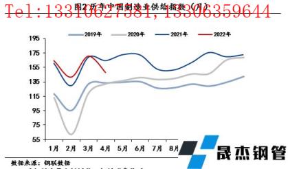 钢铁是终端制造业的重要生产原材料,以钢铁消费趋势为观测视角可以较为准确的判断下游制造业发展状况。4月钢铁业供给指数为186.38,同比下降8.74%,环比增长6.78%。供应方面,4月份唐山地区疫情影响因素减弱,无缝厚壁钢管厂家陆续复产,据统计,4月五大品种产量环比增长3.6%。消费方面,五大品种厚壁无缝钢管消费环比增长3.4%,同比下降16%。具体来看,受疫情和房企资金紧张影响,房地产投资和施工活动均受限,4月建筑厚壁无缝钢管表观消费量同比下降28%,是厚壁无缝钢管消费的主要拖累项。制造业方面,疫情对制造业供应链冲击较大,4月PMI指数录得47.4%,环比上月继续大幅下滑2.1个百分点,是2020年疫情以来最低的水平,企业生产、订单指数明显下滑,热卷消费同比下降3.45%。