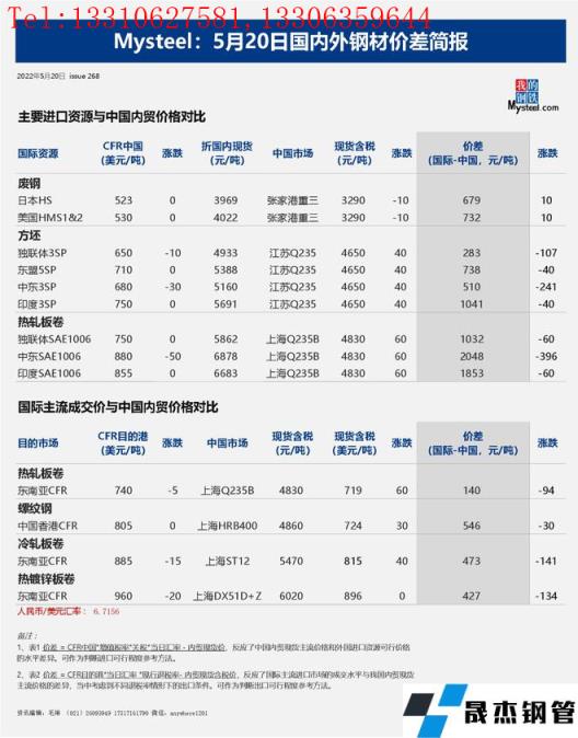 免责声明:本网站(港澳资料大全)刊载的“2022年05月20日日报:国内外钢材_无缝钢管价差汇总(2022.5.20)”等均源于网络,版权归原作者所有,且仅代表原作者观点,本文所载信息仅供参考。转载仅为学习与交流之目的,如无意中侵犯您的合法权益,请及时联系删除。本网站刊登此篇文章并不意味着本站赞同其观点或证实其内容的真实性,我们不对其科学性、严肃性等作任何形式的保证。如果侵犯了您的版权,请尽快联系我们予以撤销,谢谢合作! 请查看相关产品 厚壁钢管,厚壁无缝钢管,厚壁管,无缝钢管厂,港澳资料大全