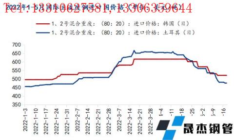 因成品销售低迷,土耳其无缝厚壁钢管厂家连续几周远离深海废钢采购,近期开始恢复采购,据调研,截止5月20日,土耳其HMS1:2(80:20)废钢到岸价在475美元/吨左右,距离3月份的高点大幅下降190美元/吨,离年内低点约21美元/吨。韩国也因海外废钢价格的大幅走低,连续4周未对日本废钢进行采购,截止5月20日,韩国HMS1:2(80:20)废钢到岸价在520美元/吨,距离3月份的高点跌95美元/吨,离年内低点约21美元/吨。截止目前,国际主流废钢进口国废钢价格较年内峰值大跌近百美元,多接近于年内低点。