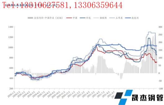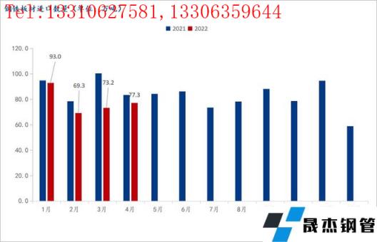 从价差的角度来看,受乌俄冲突导致的全球厚壁无缝钢管供需错配影响,海外市场热卷价格在4月份触及高点,全球市场除中国外热卷平均价格已经超过1000美元/吨,海内外价差达到1700元/吨。在海外市场急需补库以及大额价差的情况下,3-4月份大批量询单开始蜂涌至中国各大无缝厚壁钢管厂家及国贸商,大量4-6月船期出口订单被签订,这从3-4月热卷出口量可以得到印证。近期海外市场价格开始有所回落,海外市场补库也基本完成,因此我国热卷出口或将量或将在6月份触及年内最高点,后逐渐回落。