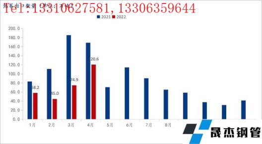 根据海关总署最新数据显示,2022年4月,我国出口钢铁板材335.7万吨,环比增2.68%,同比减少36.68%;进口77.3万吨,环比小幅增加5.56%;同比减少7.42%。