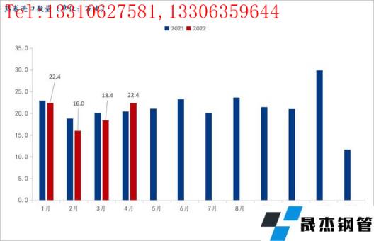 2022年4月,我国中板出口26.1万吨,进口14.9万吨。中板出口环比减少20.99%,同比减44.00%;进口环比增7.22%,同比减21.06%。