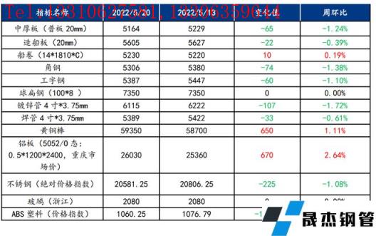 截止2022年5月20日,各原材料当日即时价格以及价格周环比情况如下:
