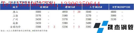 北方型钢:唐山型钢价格趋强,早盘交投不温不火,价格涨后下游接受度一般,采购积极性不佳,午后出货未有明显好转,整体成交偏弱。截止16:00统唐山20家型无缝厚壁钢管厂家售19170吨,较早盘增80%,较上一交易日减79%,其中工6家2010吨,角7家13260吨,槽7家3900吨。