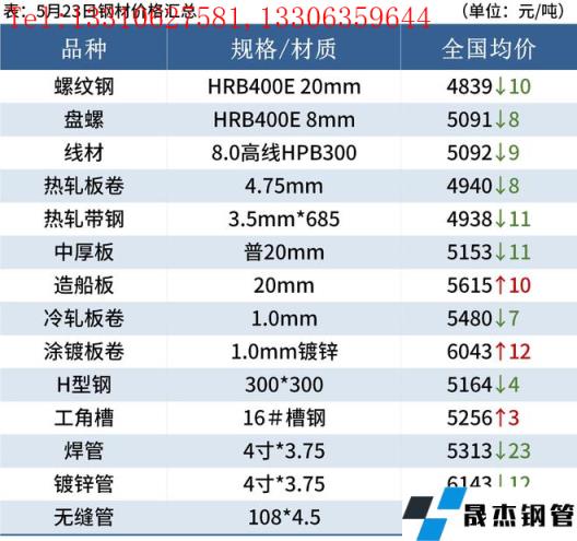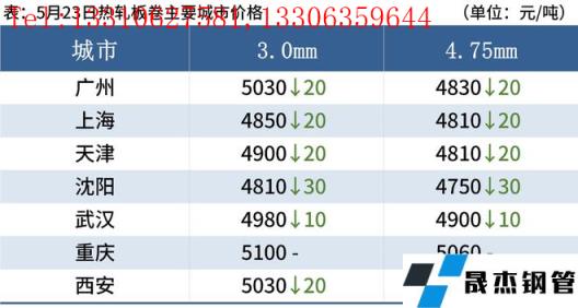 5月23日,国内厚壁无缝钢管市场价格窄幅震荡,涨跌互现,唐山普方坯出厂价涨20报4540元/吨。印度上调铁矿石出口关税,刺激5月23日铁矿石期货大涨,不过钢市成交量一般,需求疲弱难以推涨钢价。