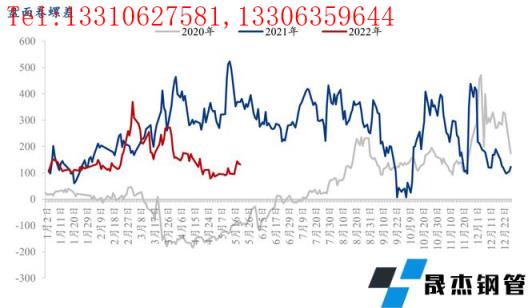 从盘面卷螺差的历史走势看,当出现大于300点和靠近0轴附近的位置,都有波段操作的机会。从下图可以看到,2022年3月国际疫情蔓延,叠加俄乌问题,无缝厚壁钢管厂家板材出口接单火爆,虽然疫情对国内市场需求也有一定冲击,但受取暖季和冬奥会限产影响,此时品种强弱并未明显分化。俄乌问题引发的出口大增,唐山疫情爆发对板材产量的影响,激化了盘面卷螺差一度冲击369高点后回落,此时就是做空卷螺差的机会。