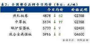 今日全国部分品种均价下跌,整体跌幅为6~62元/吨