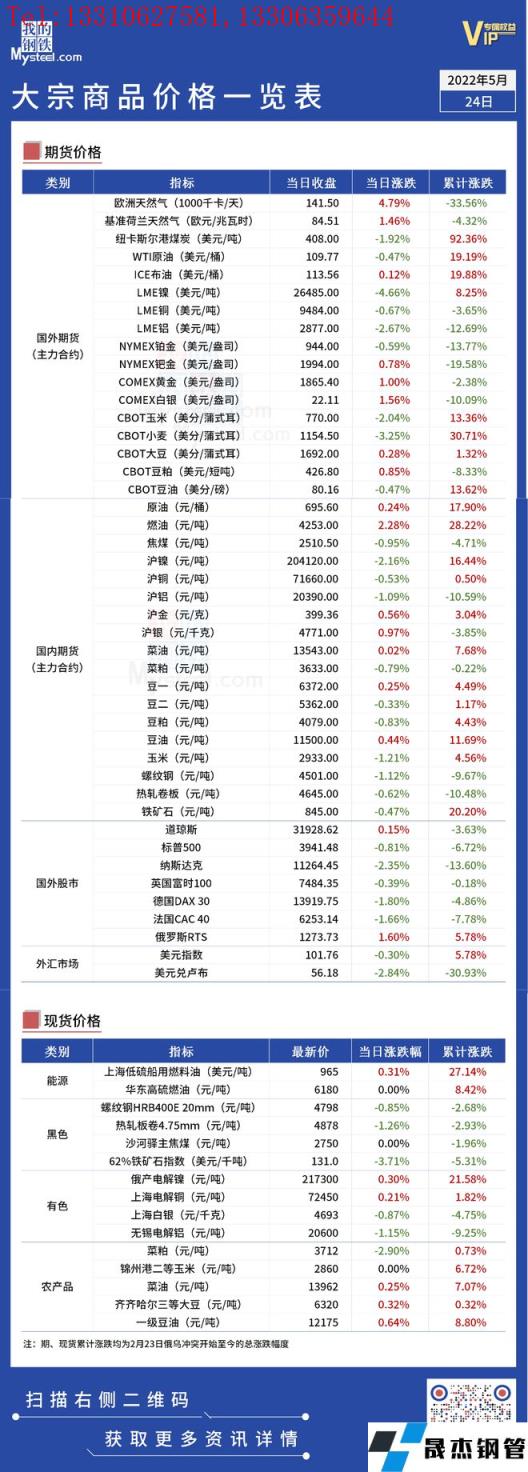 免责声明:本网站(港澳资料大全)刊载的“俄乌局势丨大宗商品价格一览表(5月24日)”等均源于网络,版权归原作者所有,且仅代表原作者观点,本文所载信息仅供参考。转载仅为学习与交流之目的,如无意中侵犯您的合法权益,请及时联系删除。本网站刊登此篇文章并不意味着本站赞同其观点或证实其内容的真实性,我们不对其科学性、严肃性等作任何形式的保证。如果侵犯了您的版权,请尽快联系我们予以撤销,谢谢合作!
