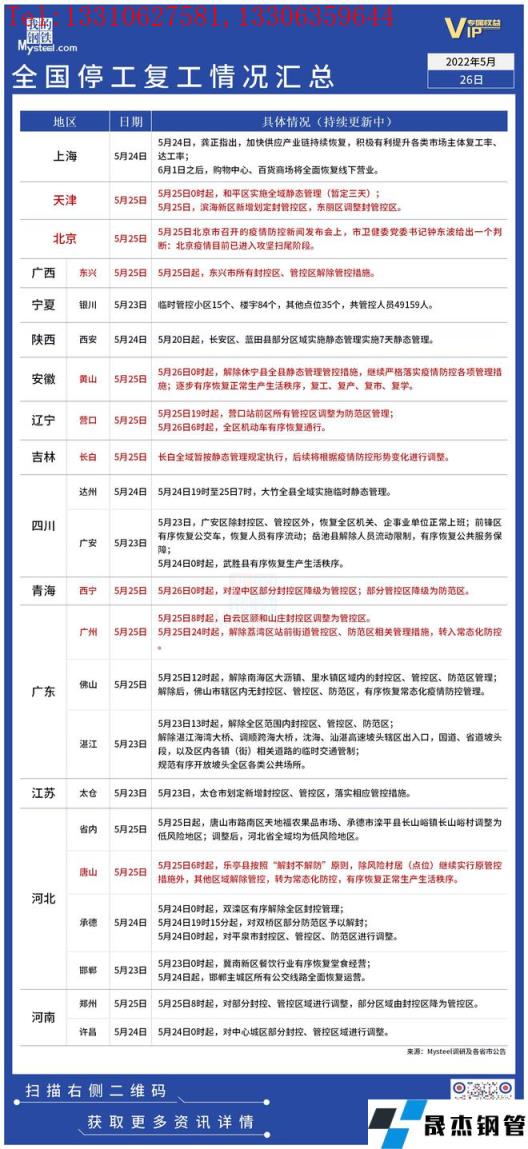 疫情影响丨全国停工复工情况汇总(5月25日)