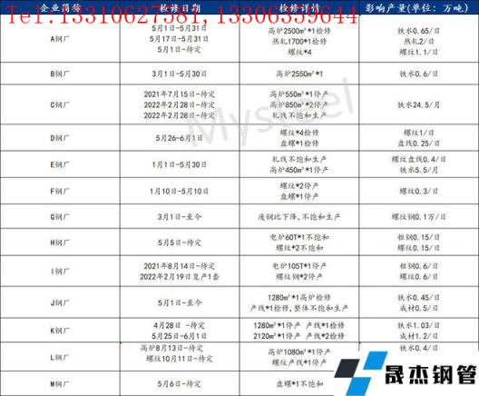 江苏无缝厚壁钢管厂家本周影响产量小幅减少,共计13家无缝厚壁钢管厂家非正常生产,较上周检修停产钢企数量持平,目前铁水影响产量较上周增加0.6万吨 /日,粗钢影响产量较上周减少0.3万吨 /日,成材影响产量减少增加1.55万吨 /日。5月22日,印度政府出台针对钢铁原料及产品的进出口关税调整政策。将焦煤、焦炭的进口税率由2.5%、5%降至0关税;将宽度在600毫米以上的热轧、冷轧及涂镀板卷的出口关税由0%提高至15%,不同铁品位和品种的铁矿石出口关税上调至45%-50%不等。经测算,该政策对铁矿影响较大。同时,我们注意到电炉螺纹利润-197元/吨,电炉无缝厚壁钢管厂家持续亏损将触发后期产量收缩,6月份多数无缝厚壁钢管厂家将或面临继续减产的可能。具体情况及各主要品种日均影响产量(单位:万吨)详见下表:
