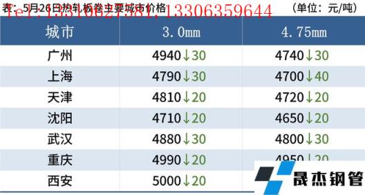 热轧板卷:5月26日,全国24个主要城市4.75mm热轧板卷均价4835元/吨,较上个交易日下跌30元/吨。目前市场信心较差,虽然昨天政府相关会议提及稳住经济大盘,但市场反应较为清淡,信心并未受到明显提振,后期仍需看疫情相关地区解封后消费回升情况是否能有出现淡季不淡需求回补的可能性。目前市场整体依然处于弱势震荡态势,盘面和现货都在震荡筑底过程中,但短期大幅向下空间不大。另外今日数据发布,本周热轧产量下降9.60万吨,厂库增加2.95万吨,社库增加5.07万吨,表需继续下降,基本符合预期,库存也处于表外转表内过程中,也与前期预计的隐形库存陆续显化相同。