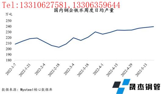 截止到5月20日, 247家钢铁企业样本日均铁水产量由4月初的226.1万吨上涨13万吨,涨幅约为5.7%。