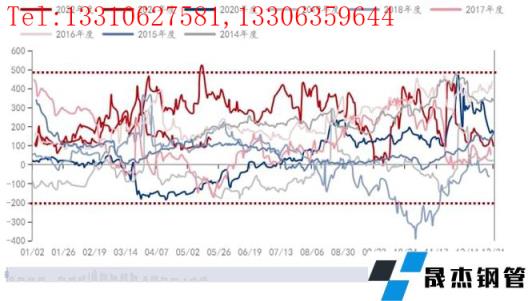 第三阶段,2021年5月-2021年9月(卷螺差高位震荡),贯彻实施碳达峰、碳中和目标,无缝厚壁钢管厂家供给收缩,其中建筑厚壁无缝钢管供应缺口大于热轧卷板,螺纹钢涨幅也大于卷板,导致卷螺差在钢价上涨的趋势中呈现高位震荡。