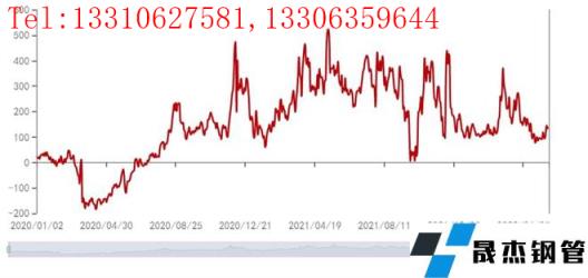 第四阶段,2021年9月-2021年12月(价格下跌,卷螺差震荡幅度加大),煤焦等原料成本坍塌,加上房地产政策的收紧,建筑厚壁无缝钢管进入需求淡季,整体表现弱于板材。价格下跌,卷螺差宽幅震荡,高点408、438,低点96、7。
