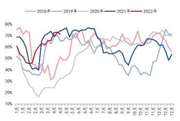 结合相应的产能利用率来看,截止至2022年4月底,湖北省螺纹钢产能利用率约在71.22%,高于近5年的每年平均水平,且从走势图上看,基本处于历年产能释放值的高位运行;而线盘产能利用率约在67.54%,尚且低于平均值水平,从走势图上看,并未达到峰值水平在释放。由此看来,随着新增产能的释放,若产能利用率维持在相对高位运行,将一定程度上在供应方面做了叠加效应。当然,供应能力的单方面增加并未能说明价格一定会出现偏低运行的表现,因此需结合需求的表现来验证一下。