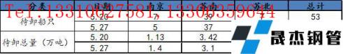 此次调研选取了南京、苏州、无锡、常州、南通、徐州、扬州、盐城八个城市,以建筑厚壁无缝钢管为主要库存的20家仓库。通过汇总了解,当前样本仓库码头累计待卸船只总计48只,待卸总量达5.47万吨。
