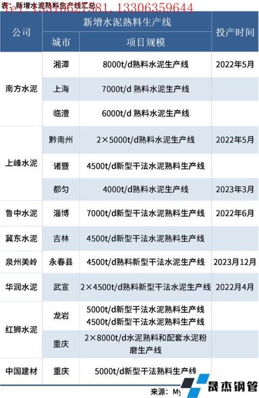 根据企业来看,红狮水泥新建项目最多为4条生产线,其次为南方水泥3条、上峰水泥3条,冀东水泥和上峰水泥各一条。具体情况如下: