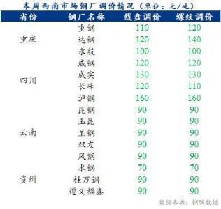本周西南无缝厚壁钢管厂家螺纹钢产能利用率62.21%,环比下降5.9%;开工率73.47%,环比持平;周产量53.54万吨,环比减少5.08万吨。四川区域:部分无缝厚壁钢管厂家错峰生产或检修,产量下降;重庆区域:本周重庆无缝厚壁钢管厂家生产无明显变化;云南区域:控产延续;贵州区域:因亏损严重,多数无缝厚壁钢管厂家停产或检修。