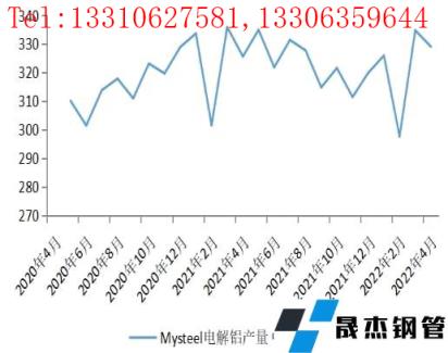 据数据显示,2022年4月全国电解铝产量(终值)为333.4万吨,大部分电解铝厂满负荷生产当中,根据目前盘面测算,当前一吨电解铝利润在3500元/吨,电解铝行业仍处于高利润水平,企业对于投产意愿表现较为强烈,产能大概率在6月份将继续释放,在供给端提供较大支持。