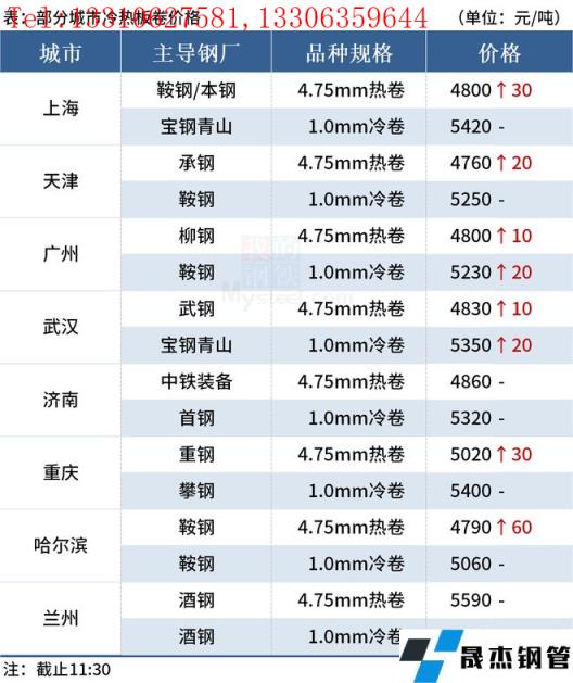 ◎乐从:30日早盘热卷市场价格上涨10,4.75以上普柳燕4800-4810,2.75普4990-5060锰4980-5000。(单位:元/吨)