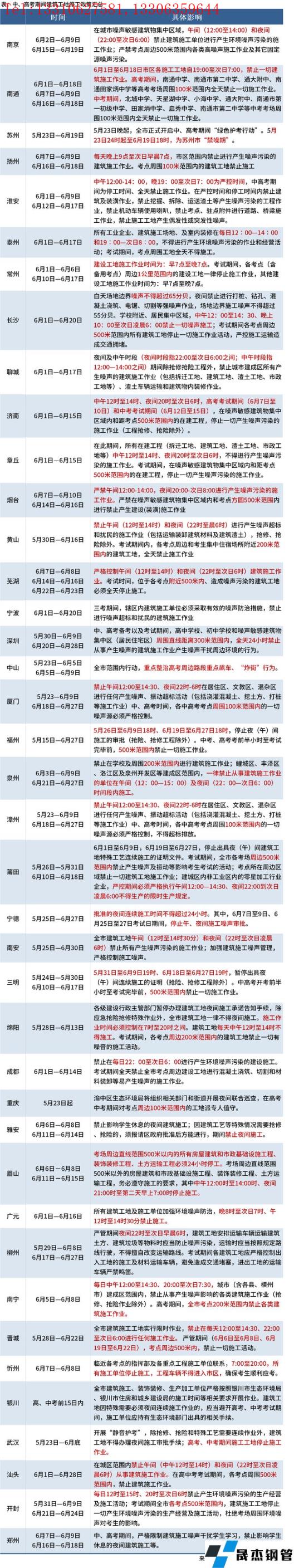 截至5月30日,据不完全统计,共有40个城市发布了建筑工地停工最新政策。加强了控制施工噪声的监督检查,对违反控制噪声的强制措施规定从事施工作业,影响居民正常工作、生活和考生正常考试、学习的项目,要立即下发整改或停工通知书,责令其迅速整改,要求及时调整施工计划,科学合理安排施工作业。具体情况如下: