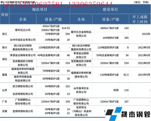 据不完全统计,5月国内8家无缝厚壁钢管厂家发布钢铁产能置换方案。其中,涉及新建炼钢产能623.5万吨,新建炼铁产能864万吨;涉及淘汰炼钢产能798万吨,淘汰炼铁产能946.53万吨。