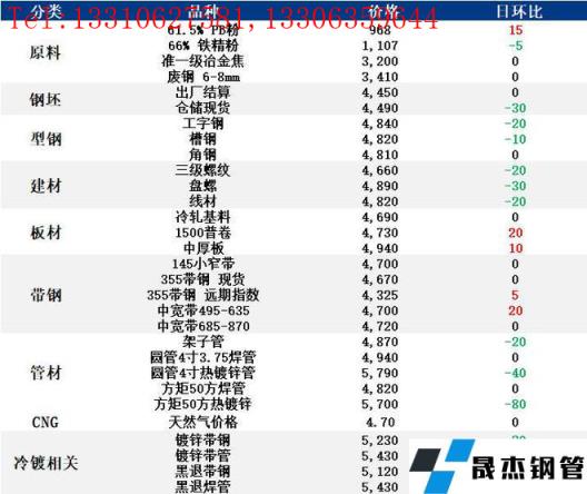 表:5月30日唐山钢市主要品种价格一览(单位:元/吨)