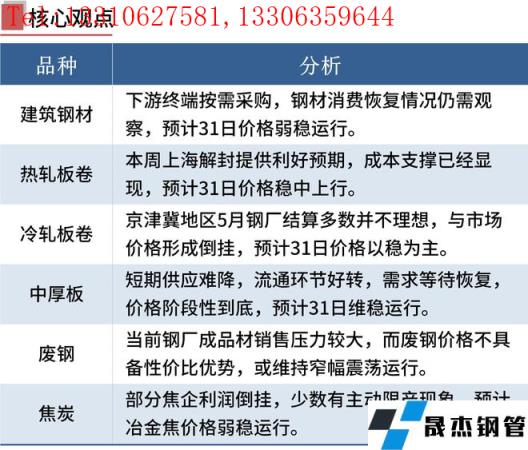 建筑厚壁无缝钢管:5月30日,全国31个主要城市20mm三级抗震螺纹钢均价4778元/吨,较上个交易日上涨13元/吨。由于期螺维持高位震荡,市场情绪表现一般,下游终端按需采购,全天成交基本与上一交易日持平。短期来看,短期现货市场弱需求面延续,目前厚壁无缝钢管消费恢复情况仍需观察,同时焦炭第四轮提降落地,成本端支撑力度减弱。因此预计31日国内建筑厚壁无缝钢管价格或将稳中有松为主。