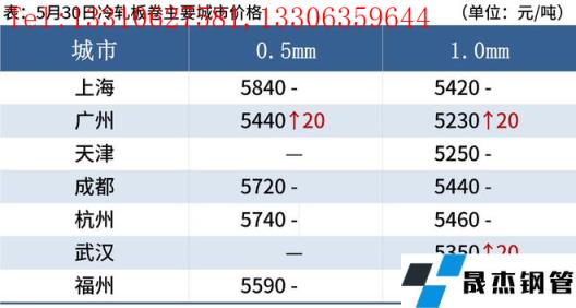 冷轧板卷:5月30日,全国24个主要城市1.0mm冷卷均价5428元/吨,较上个交易日上涨3元/吨。大多市场持稳报价,上海市复产复工逐步推行,资源流通速度逐步加快,大部分仓库都能加工提货,运费约为正常时期的1.5倍,但商家资金和库存压力仍较大;西北地区乌鲁木齐疫情管控较为严格,由于近三个月持续亏损,订货成本偏高,现贸易商订货积极性差。心态方面,京津冀地区由于本月无缝厚壁钢管厂家结算多数并不理想,与市场价格形成倒挂,贸易商持谨慎观望态度。综合来看,预计31日国内冷轧板卷价格以稳为主。